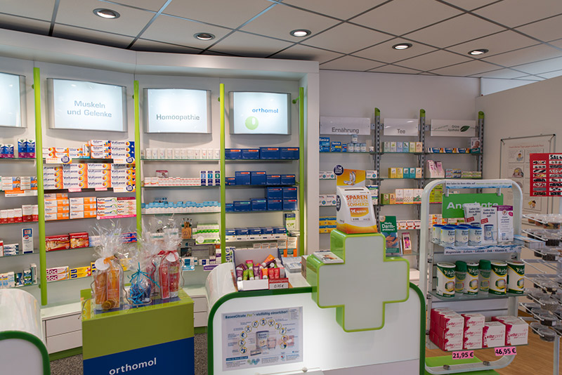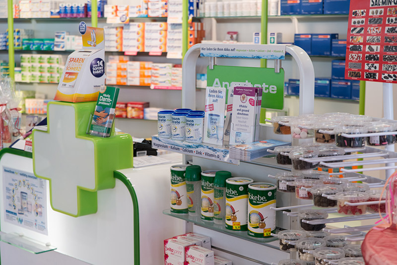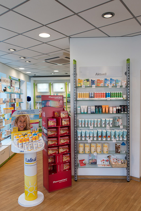 - Naturkosmetik (mit Marken wie z.B. Bioderma, Weleda u.v.m.) und eine hauseigene Kosmetikfirma