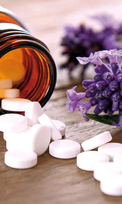 Homöopathie-Produkte, Naturheilmittel, Heilkräuter, Tee, Phytotherapie.